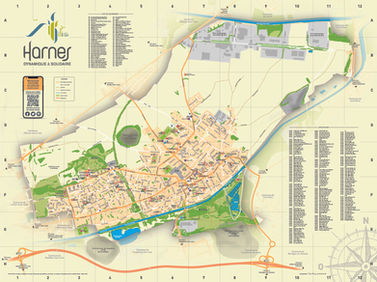 sentiers de randonnées, zoom centre-ville, boussole, insertion de photos, blason, logo, texte descriptif et/ou historique...